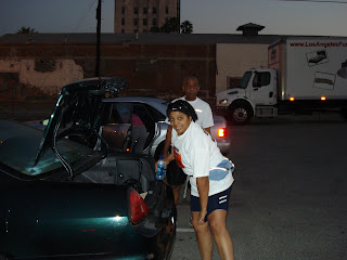 We found great parking only a few blocks away from the start. Penny and George making a last minute check before the sun rose. You don't want to forget the life saver "bodyglide".